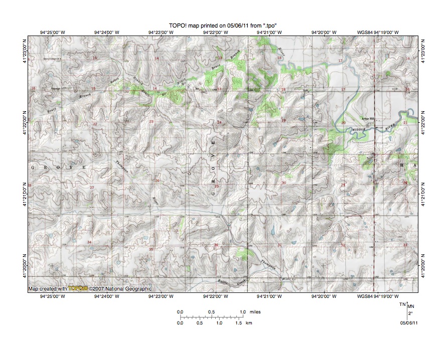 Figure 5: Detailed topographic map of Platte River-Grand River drainage divide. United States Geological Survey map digitally presented using National Geographic Society TOPO software.