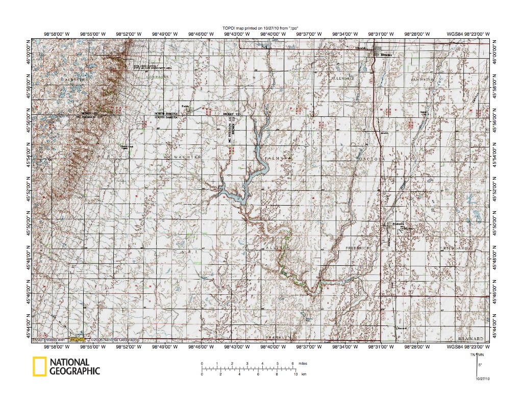 Figure 1: North and South Dakota James River drainage basin (select and click on map to enlarge). National Geographic Society map digitally presented using National Geographic Society TOPO software.