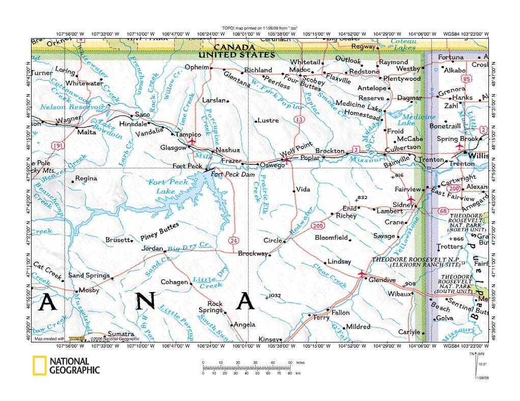 Figure 1: Eastern Montana Redwater River drainage basin location map. National Geographic Society map digitally presented using National Geographic Society TOPO software.