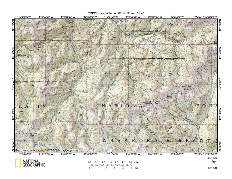 Figure 1: Mill Creek-Hellroaring Creek drainage divide area location map (select and click on maps to enlarge). National Geographic Society map digitally presented using National Geographic Society TOPO software.