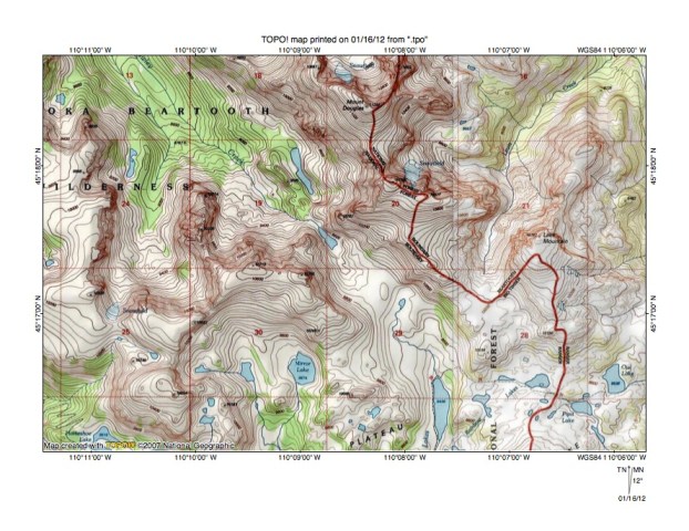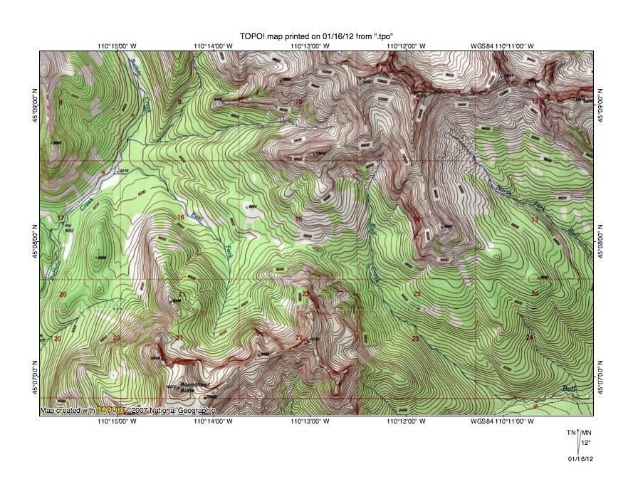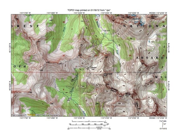 Figure 6: Detailed map of East Fork Boulder River-Slough Creek drainage divide area. United States Geological Survey map digitally presented using National Geographic Society TOPO software.