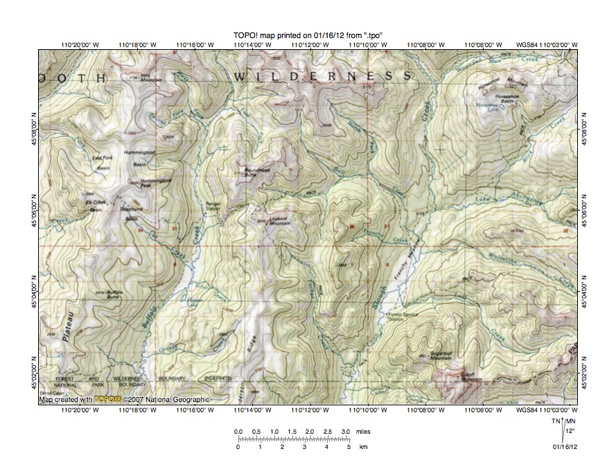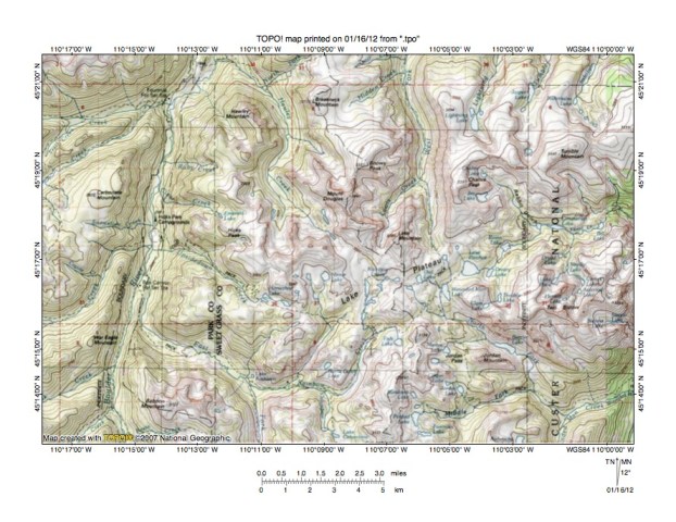 Figure 5: East Fork Boulder River-Slough Creek drainage divide area. United States Geological Survey map digitally presented using National Geographic Society TOPO software.