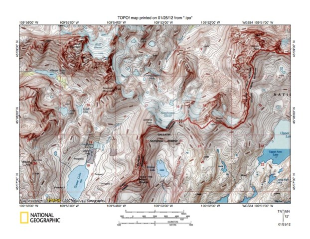 Figure 10: Detailed map of Granite Lake-Muddy Creek drainage divide area. United States Geological Survey map digitally presented using National Geographic Society TOPO software.