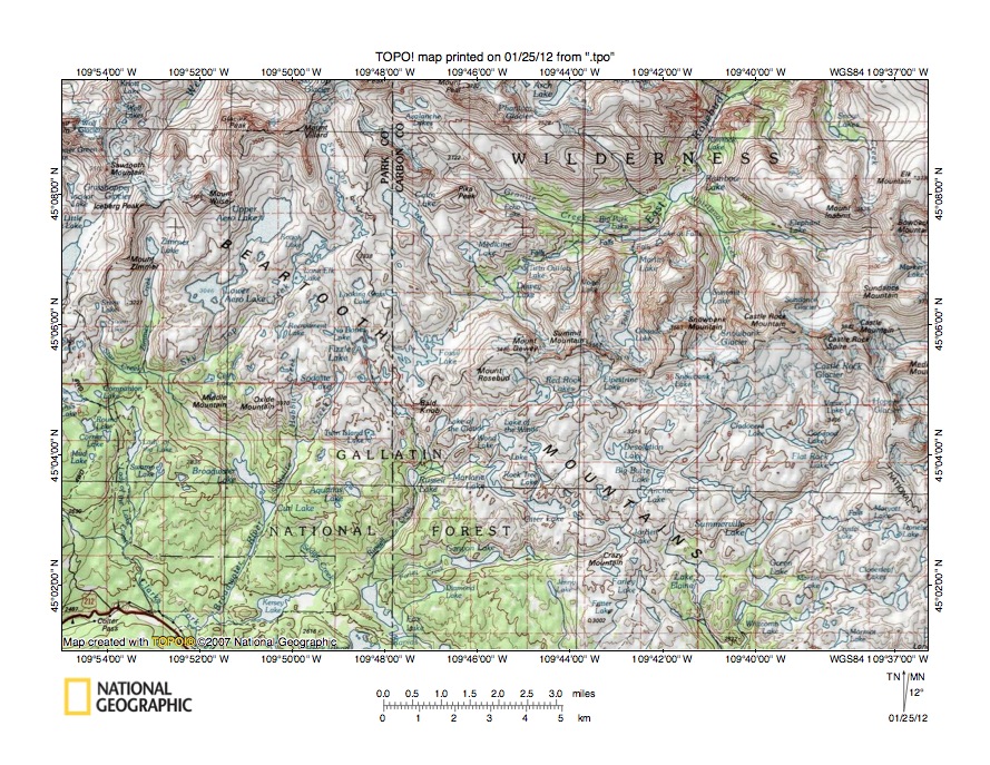 Figure 3: Stillwater River-Clarks Fork of the Yellowstone River drainage divide area. United States Geological Survey map digitally presented using National Geographic Society TOPO software.