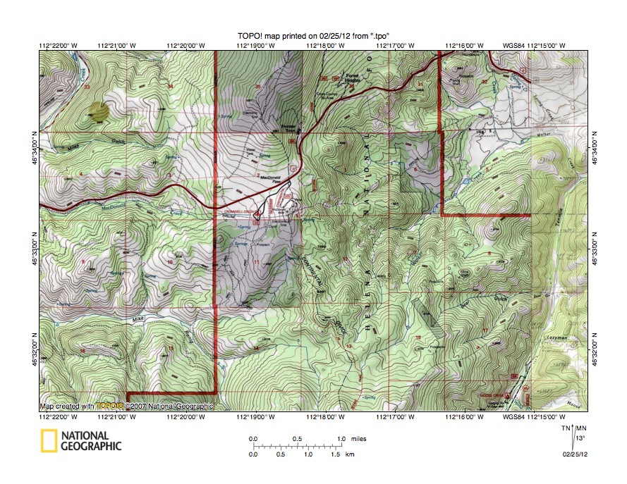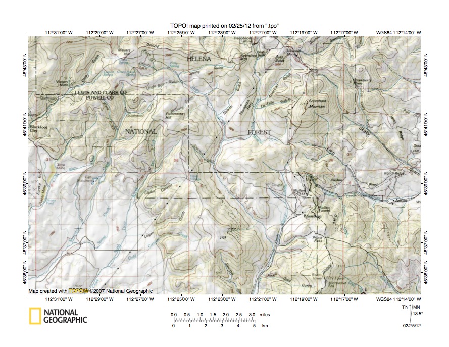Figure 2: Detailed location map Little Blackfoot River-Missouri River drainage divide area. United States Geological Survey map digitally presented using National Geographic Society TOPO software.