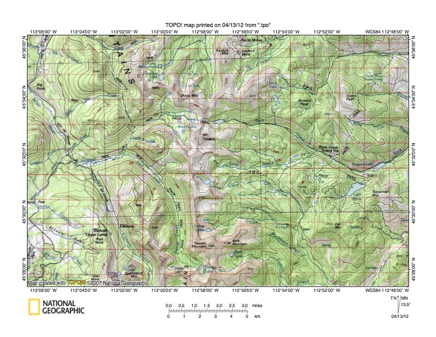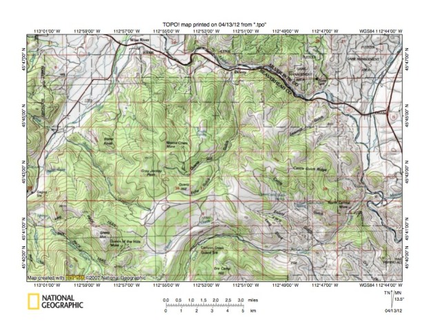 Figure 7: Wise River-Rock Creek drainage divide area. United States Geological Survey map digitally presented using National Geographic Society TOPO software.