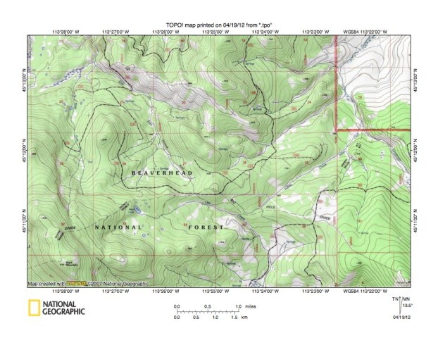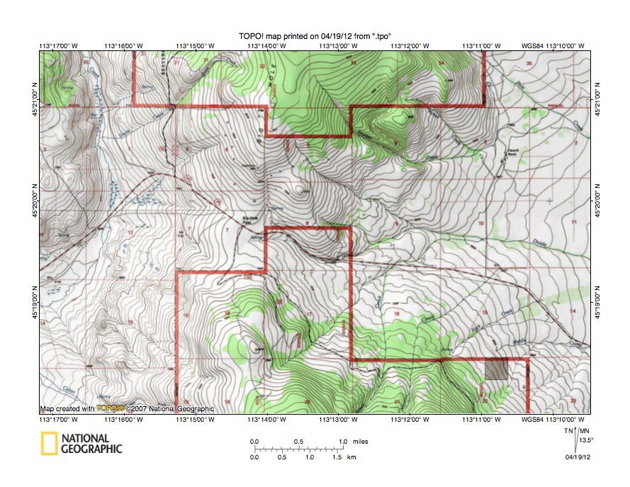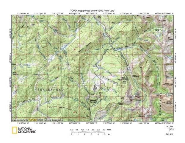 Figure 3: Wise River-Grasshopper Creek drainage divide area. United States Geological Survey map digitally presented using National Geographic Society TOPO software.