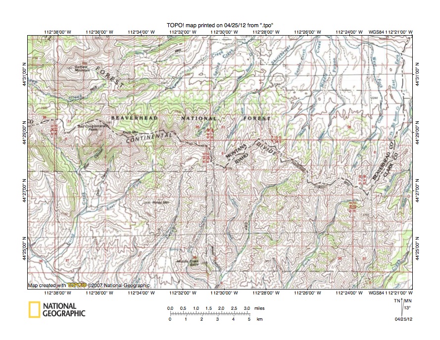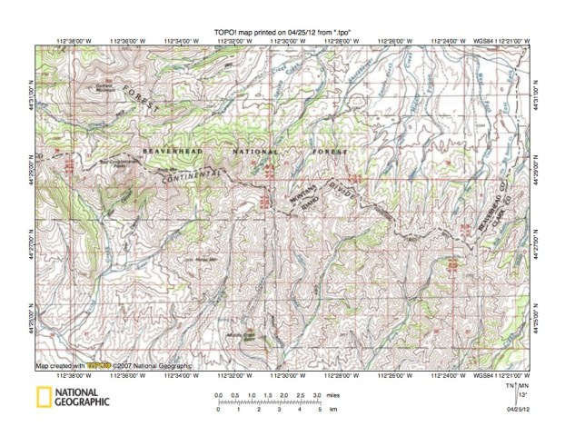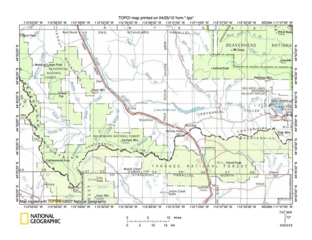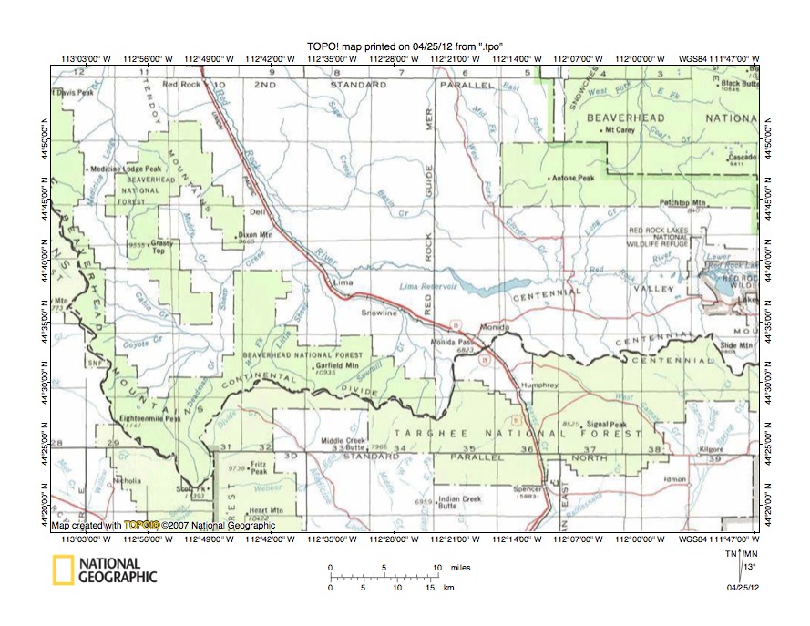 Figure 1: Red Rock River-Medicine Lodge Creek drainage divide area location map (select and click on maps to enlarge). National Geographic Society map digitally presented using National Geographic Society TOPO software.