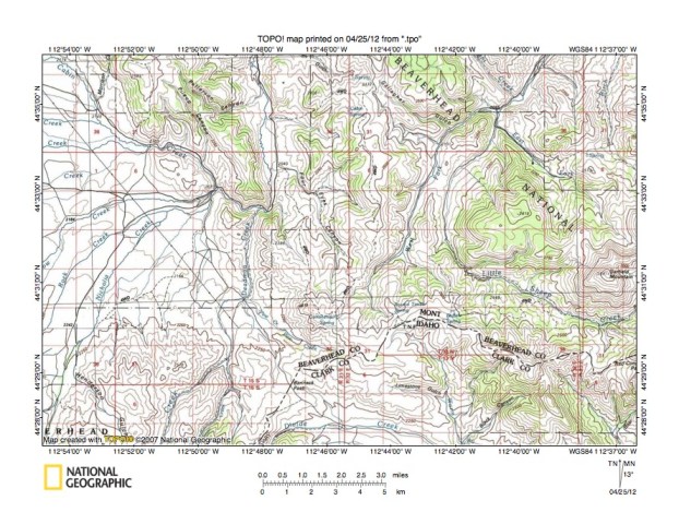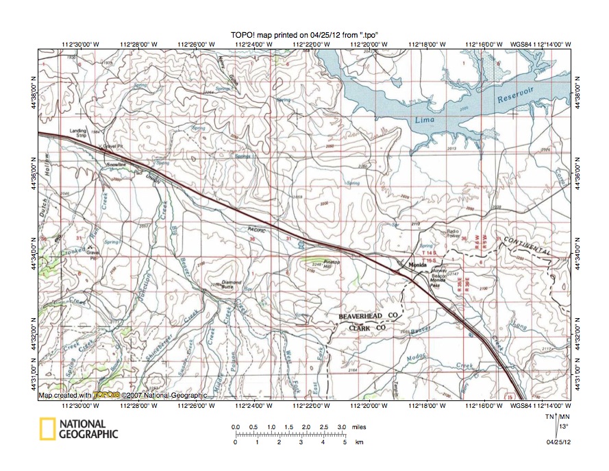 Figure 10:Detailed map of Junction Creek-Beaver Creek drainage divide area at Monida Pass. United States Geological Survey map digitally presented using National Geographic Society TOPO software.