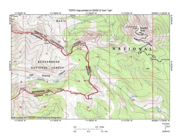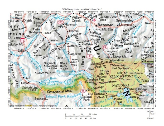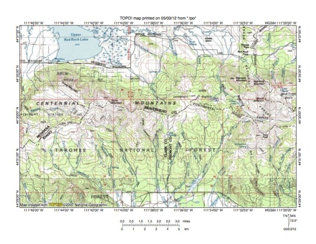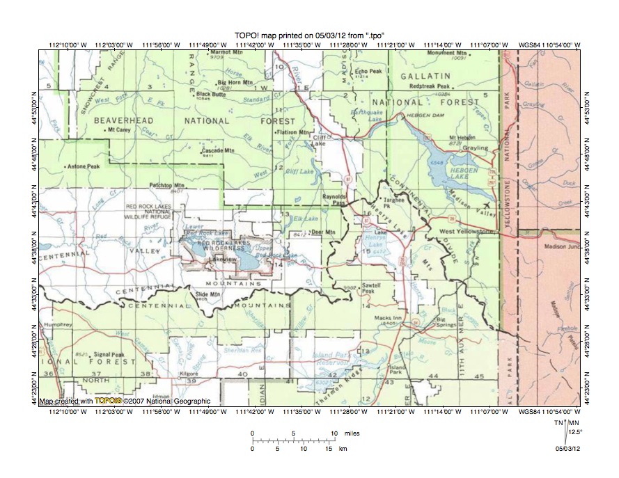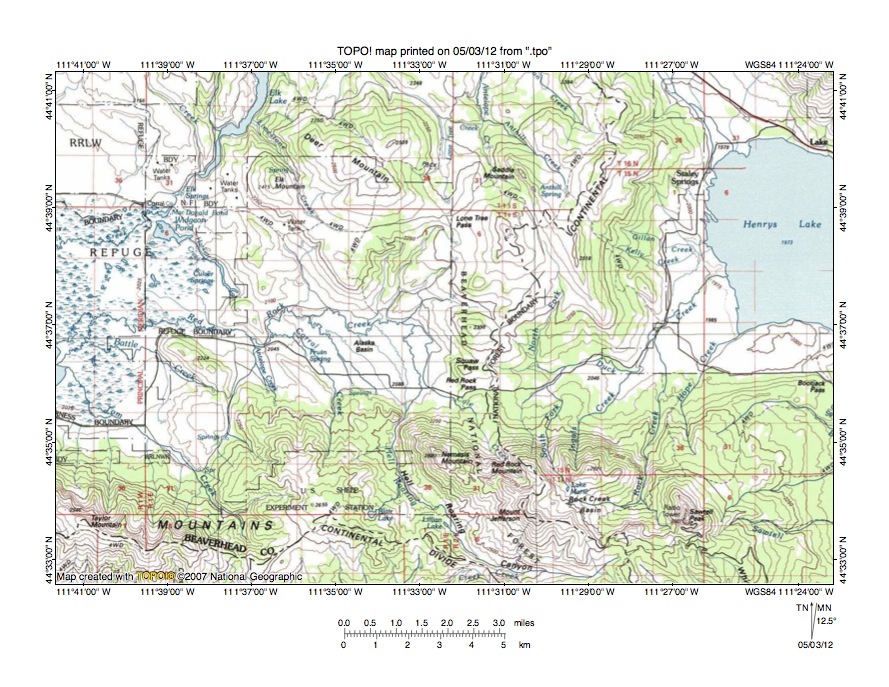 Figure 1: Red Rock River-Henrys Fork drainage divide area location map (select and click on maps to enlarge). National Geographic Society map digitally presented using National Geographic Society TOPO software.