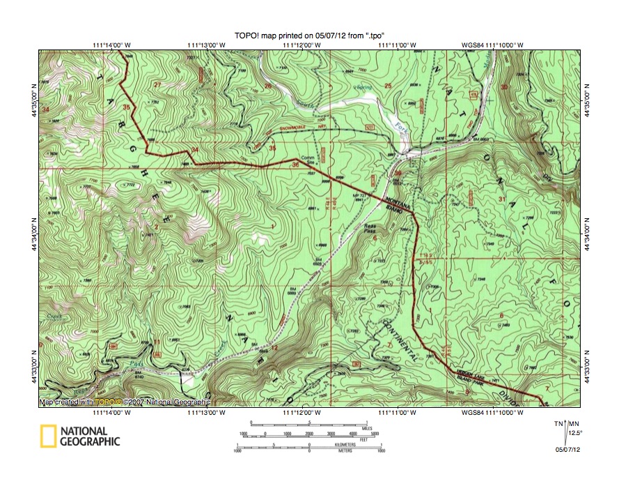 Figure 2: Detailed location map Madison River-Henrys Fork drainage divide area. United States Geological Survey map digitally presented using National Geographic Society TOPO software.