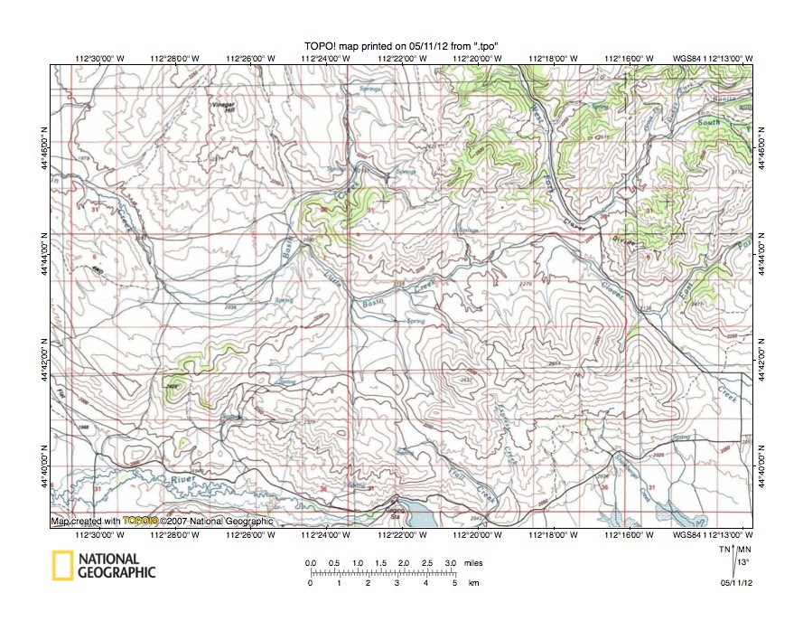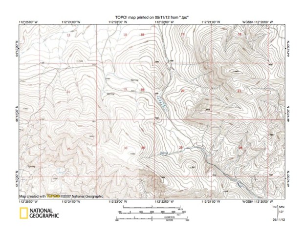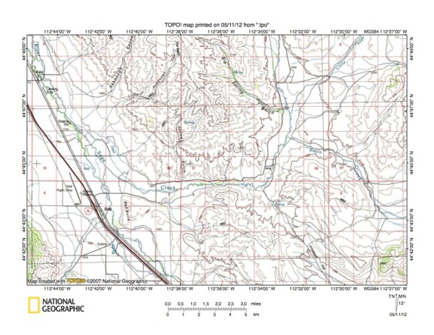 Figure 9: Basin Creek-Red Rock River drainage divide area. United States Geological Survey map digitally presented using National Geographic Society TOPO software.