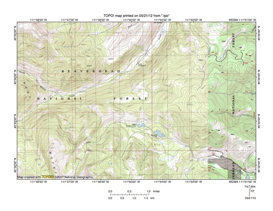 Figure 3: South Boulder River-Willow Creek drainage divide area. United States Geological Survey map digitally presented using National Geographic Society TOPO software.