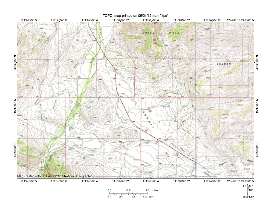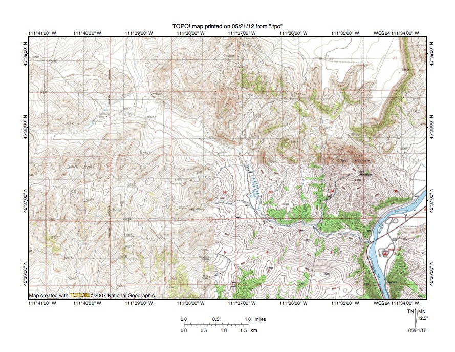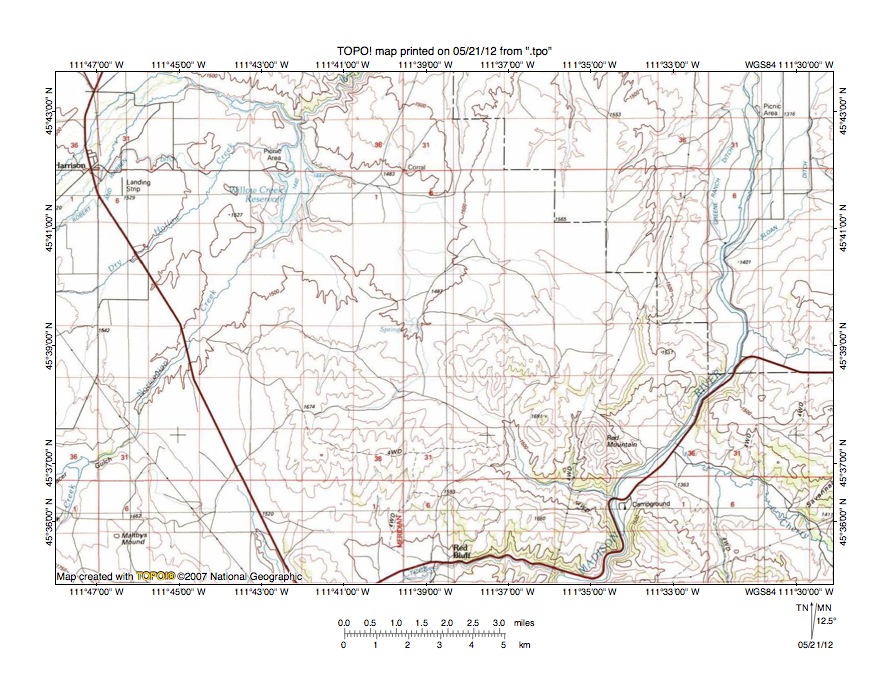Figure 5: Willow Creek-Madison River drainage divide area. United States Geological Survey map digitally presented using National Geographic Society TOPO software.