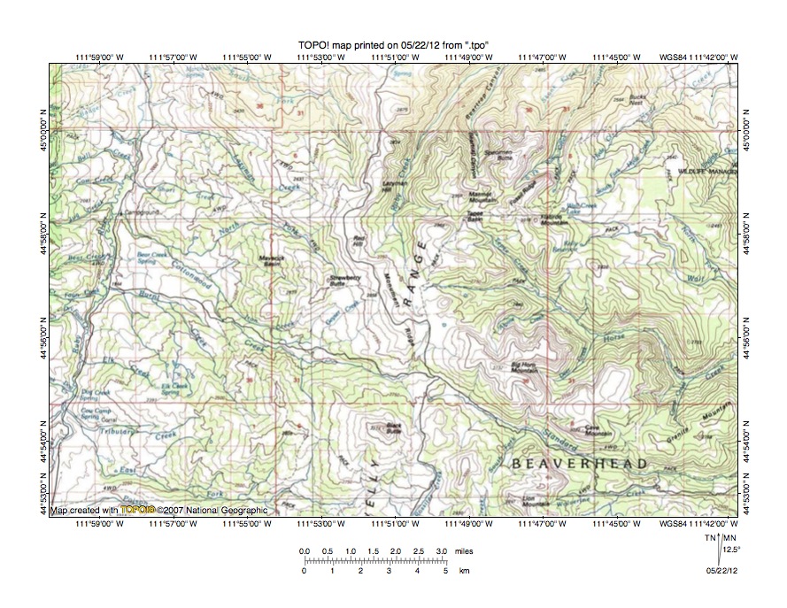 Figure 2: Detailed location map Ruby River-Madison River drainage divide area. United States Geological Survey map digitally presented using National Geographic Society TOPO software.