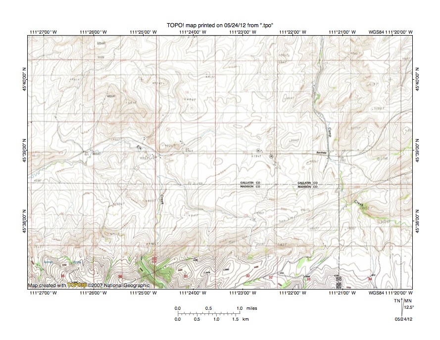 Figure 9: South Fork Spanish Creek-Gallatin River drainage divide. United States Geological Survey map digitally presented using National Geographic Society TOPO software.