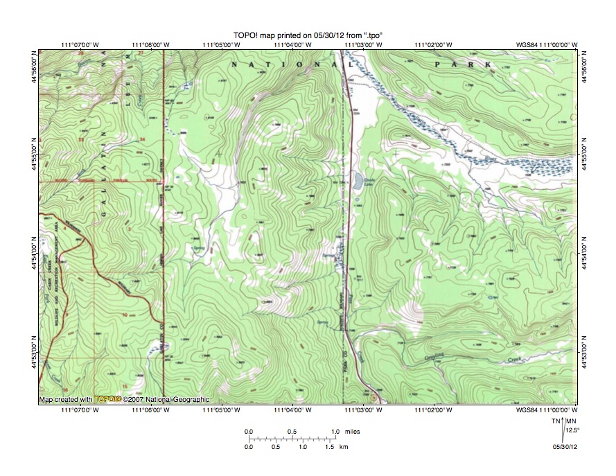 Figure 9: Papoose Cree-Madison River drainage divide area. United States Geological Survey map digitally presented using National Geographic Society TOPO software.