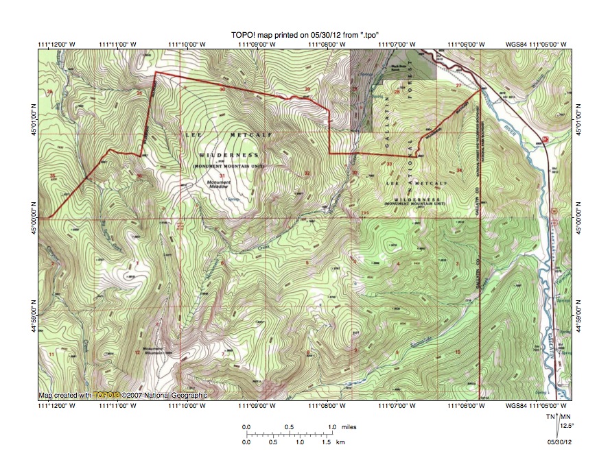 Figure 3: Gallatin Rive-Grayling Creek drainage divide area. United States Geological Survey map digitally presented using National Geographic Society TOPO software.