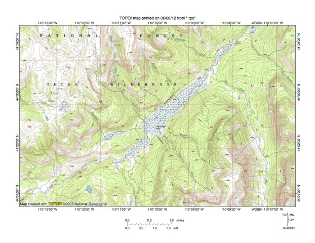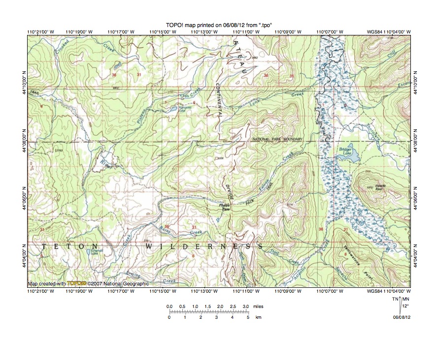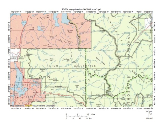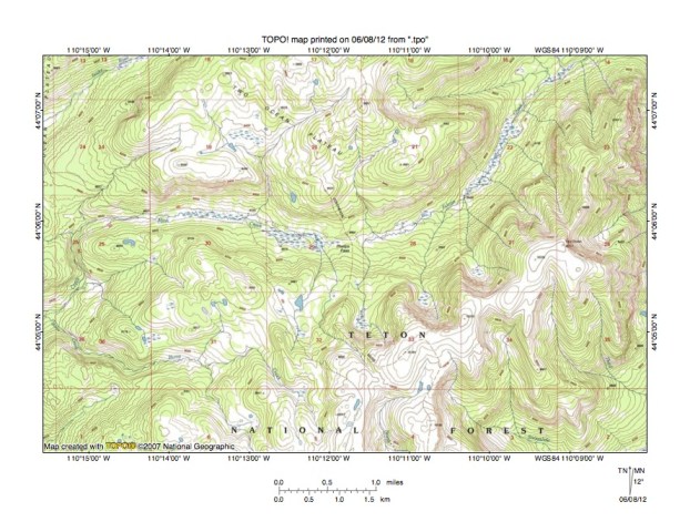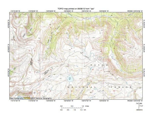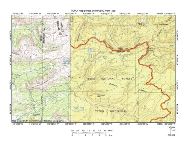 Figure 8: Detailed map of Trail Creek-North Buffalo Fork drainage divide area. United States Geological Survey map digitally presented using National Geographic Society TOPO software.
