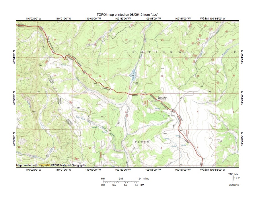 Figure 9: Warm Springs Creek-South Fork Fish Creek River drainage divide area. United States Geological Survey map digitally presented using National Geographic Society TOPO software.
