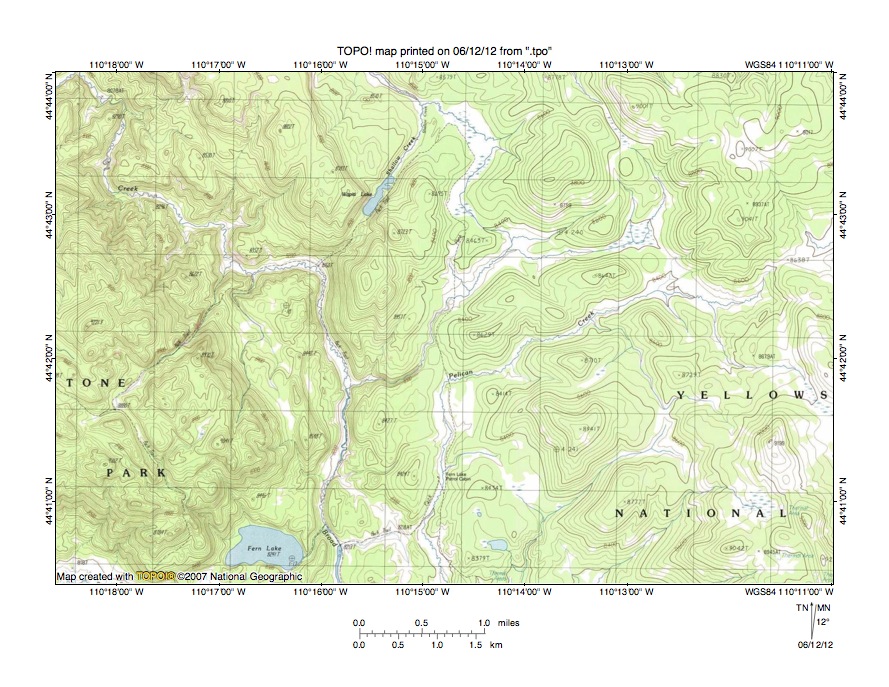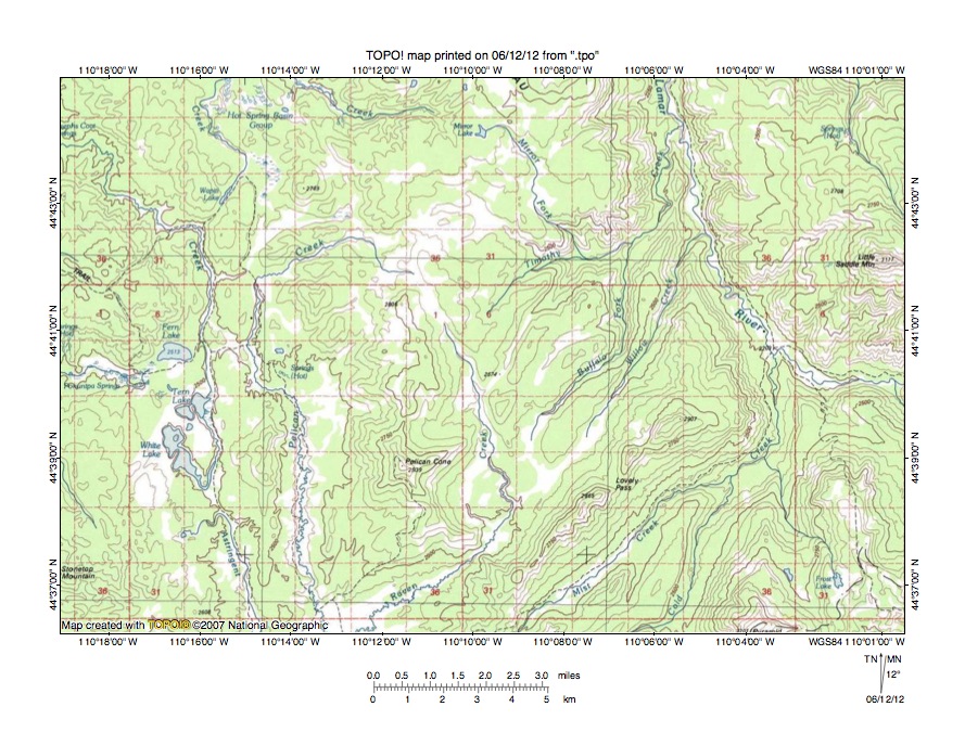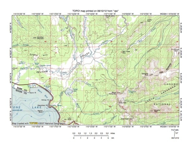 Figure 5: Yellowstone River-Pelican Creek drainage divide area. United States Geological Survey map digitally presented using National Geographic Society TOPO software.