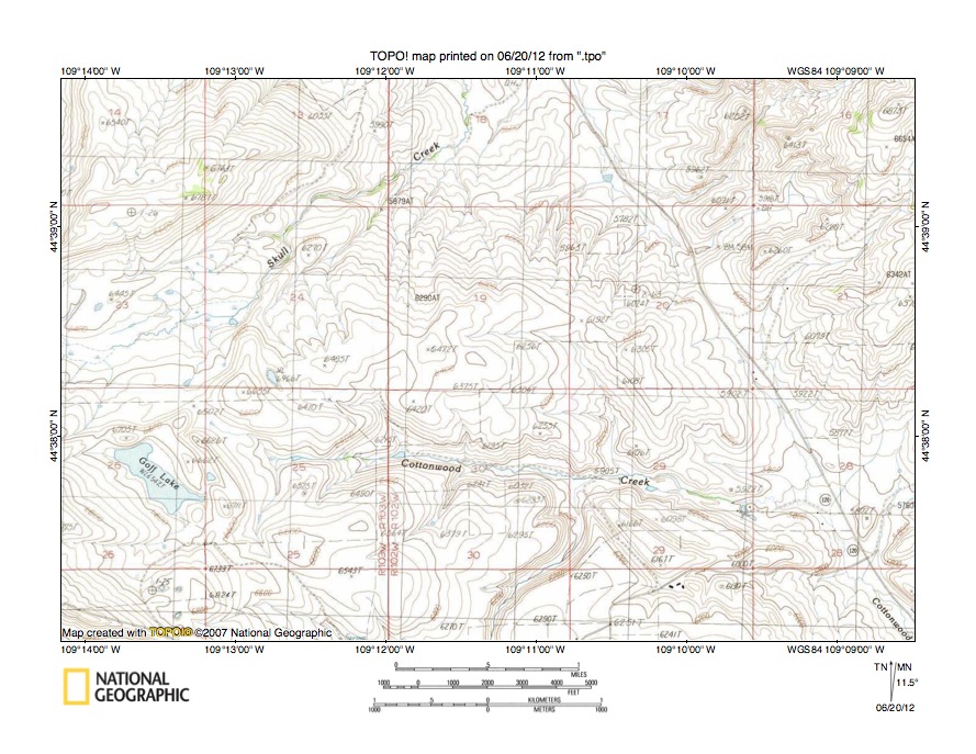 Figure 10: Detailed map of Skull Creek-Cottonwood Creek drainage divide area. United States Geological Survey map digitally presented using National Geographic Society TOPO software.