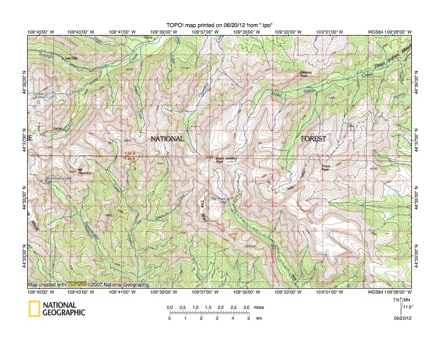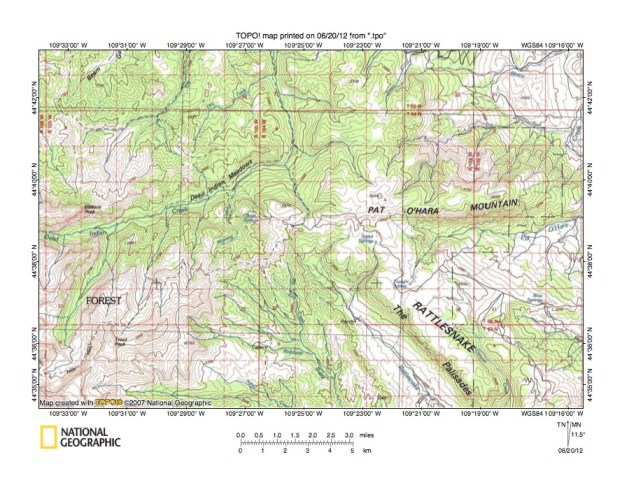 Figure 8: Detailed map of Dead Indian Creek-Rattlesnake Creek drainage divide area. United States Geological Survey map digitally presented using National Geographic Society TOPO software.