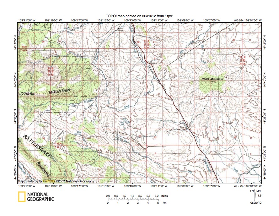 Figure 2: Detailed location map Clarks Fork Yellowstone River-Shoshone River drainage divide area. United States Geological Survey map digitally presented using National Geographic Society TOPO software.