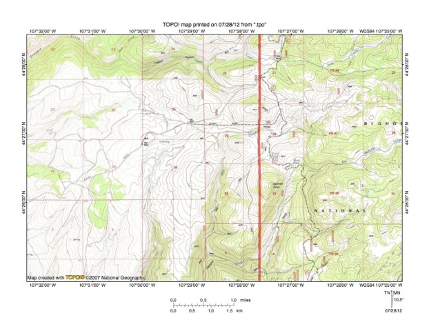 Figure 5: Trapper Creek-Medicine Lodge Creek drainage divide area. United States Geological Survey map digitally presented using National Geographic Society TOPO software.
