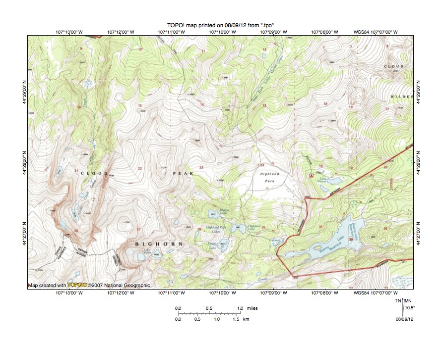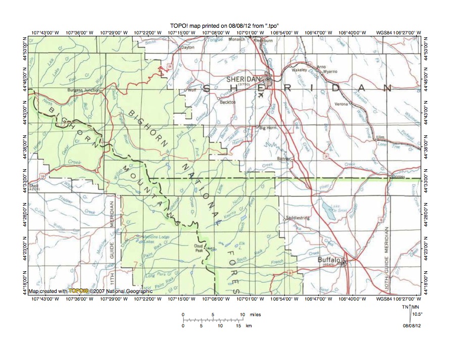 Figure 10: detailed map of North Piney Creek-South Piney Creek drainage divide area. United States Geological Survey map digitally presented using National Geographic Society TOPO software.