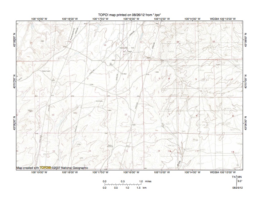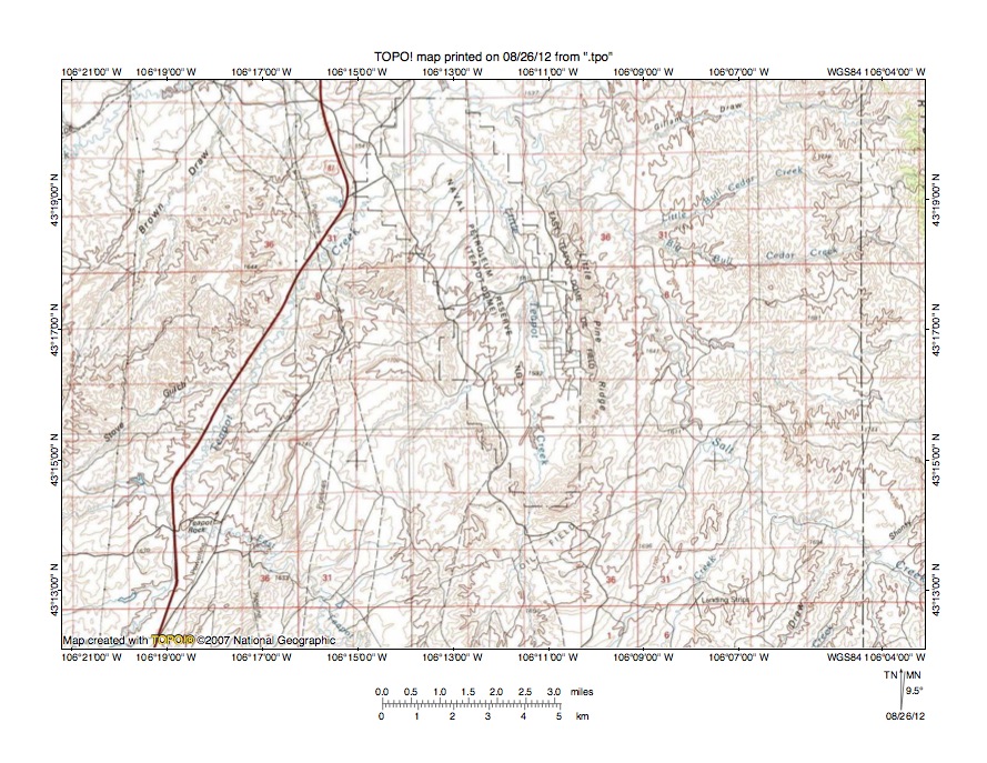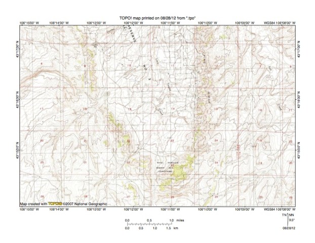 Figure 10: Detailed map South Teapot Dome area. United States Geological Survey map digitally presented using National Geographic Society TOPO software.