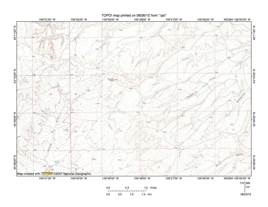 Figure 8: Detailed map of Teapot Creek-Statzer Draw drainage divide area. United States Geological Survey map digitally presented using National Geographic Society TOPO software.