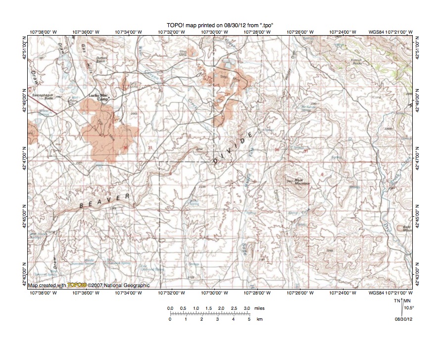 Figure 9: Dry Creek-Sweetwater River drainage divide area. United States Geological Survey map digitally presented using National Geographic Society TOPO software.