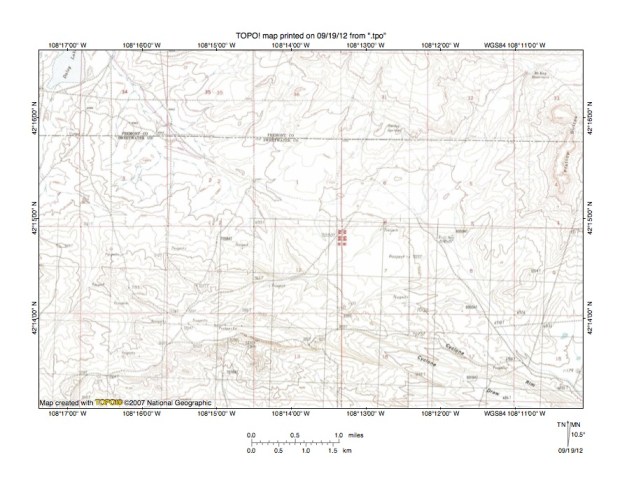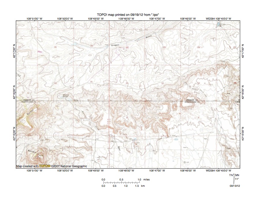 Figure 10: Detailed map of West Alkali Creek-Lost Creek drainage divide area. United States Geological Survey map digitally presented using National Geographic Society TOPO software.