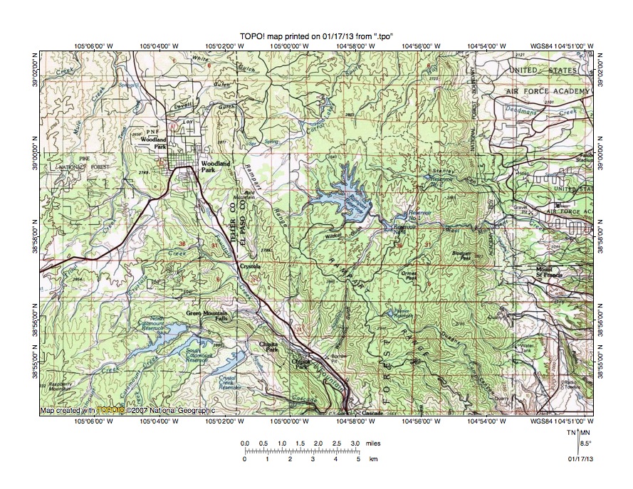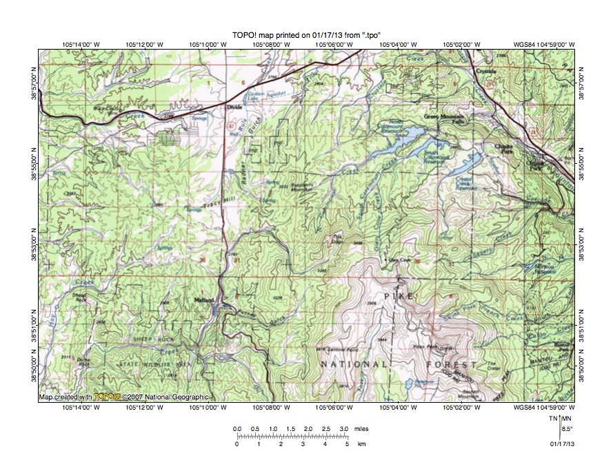Figure 3: Trout Creek-Fountain Creek drainage divide area. United States Geological Survey map digitally presented using National Geographic Society TOPO software.