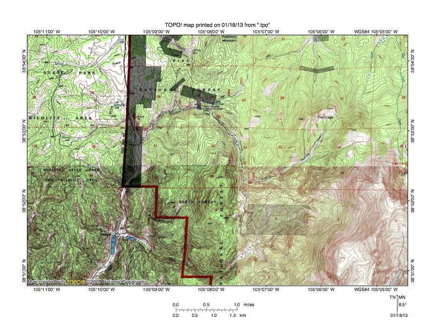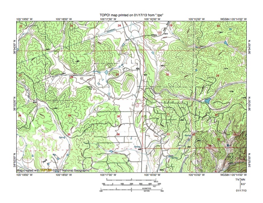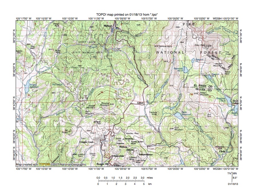 Figure 4: Detailed map of Fountain Creek Canyon area. United States Geological Survey map digitally presented using National Geographic Society TOPO software.