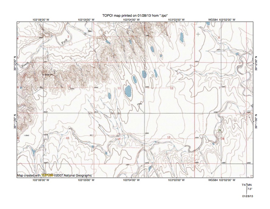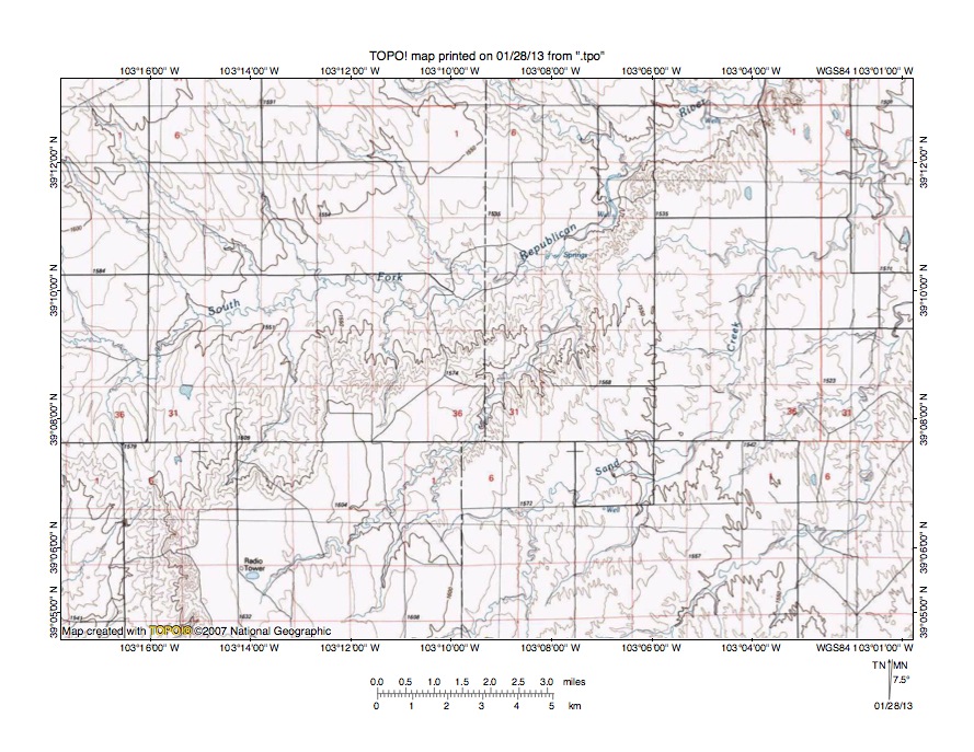 Figure 10: Detailed map of South Fork Republican River-Sand Creek drainage divide area. United States Geological Survey map digitally presented using National Geographic Society TOPO software.