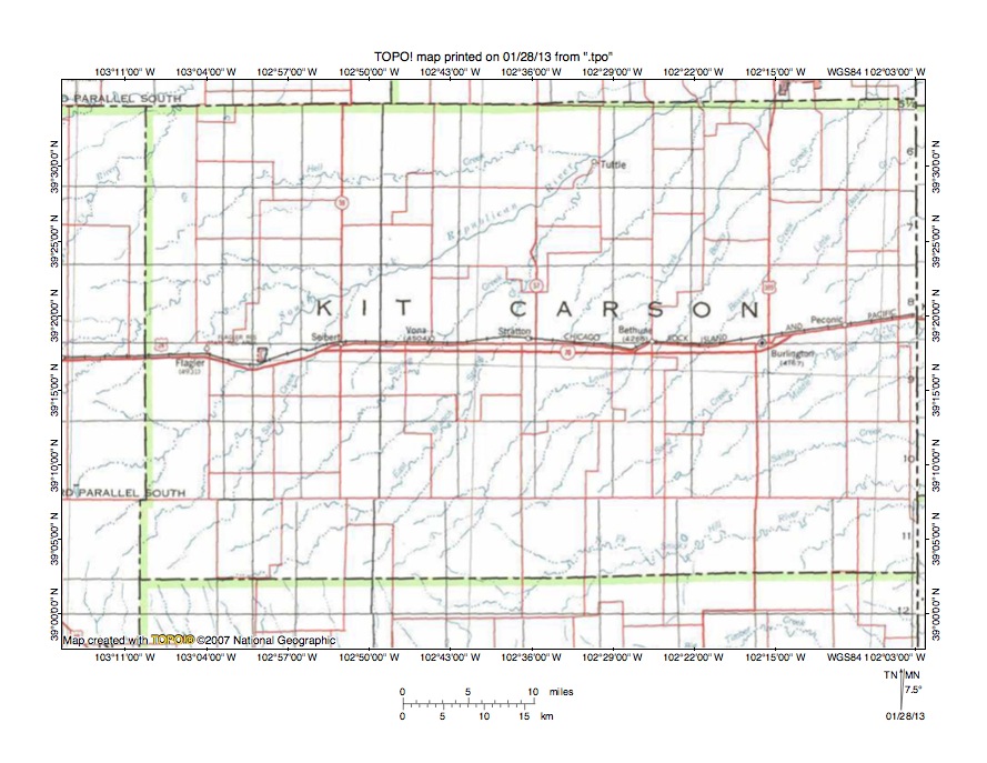 Figure 1: South Fork Republican River-North Fork Smoky Hill River drainage divide area location map (select and click on maps to enlarge). National Geographic Society map digitally presented using National Geographic Society TOPO software.