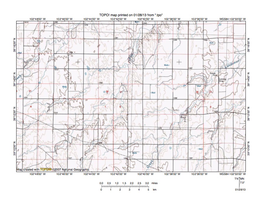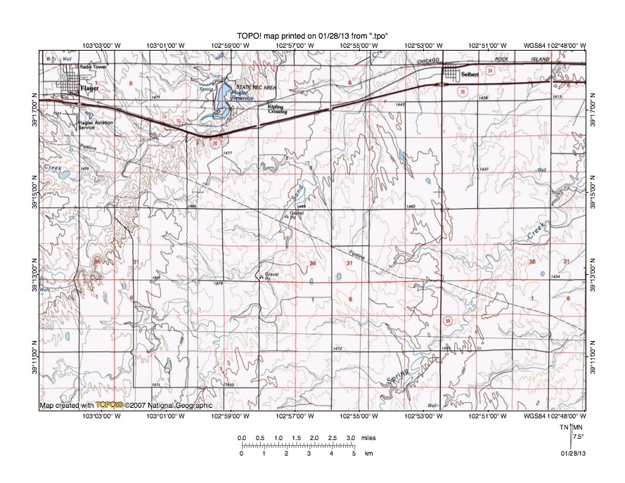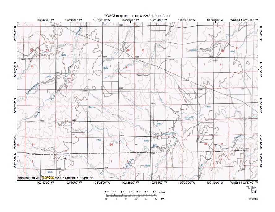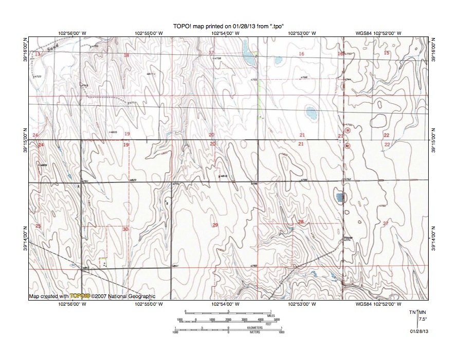 Figure 9: South Fork Republican River-Sand Creek drainage divide area. United States Geological Survey map digitally presented using National Geographic Society TOPO software.