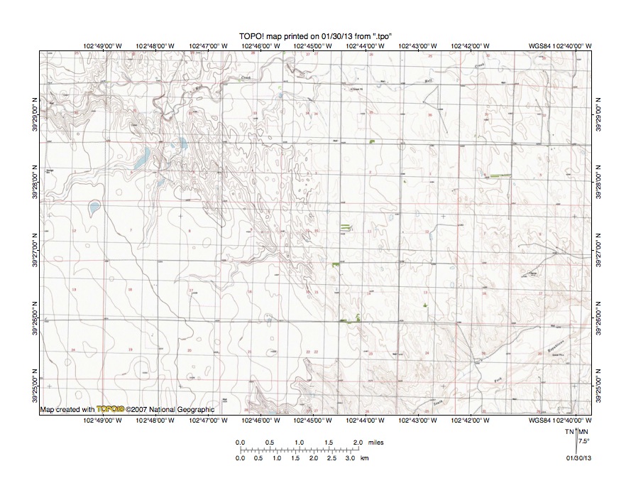 Figure 10: Detailed map of Hell Creek-South Fork Republican River drainage divide area. United States Geological Survey map digitally presented using National Geographic Society TOPO software.